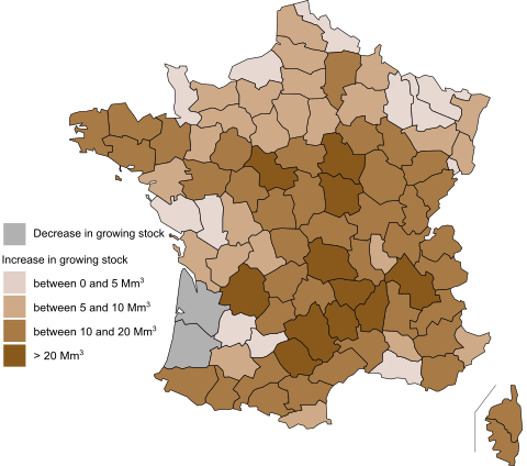 The mean growing-stock volume of the French forests is estimated at 2.9 billion cubic meters. [1]