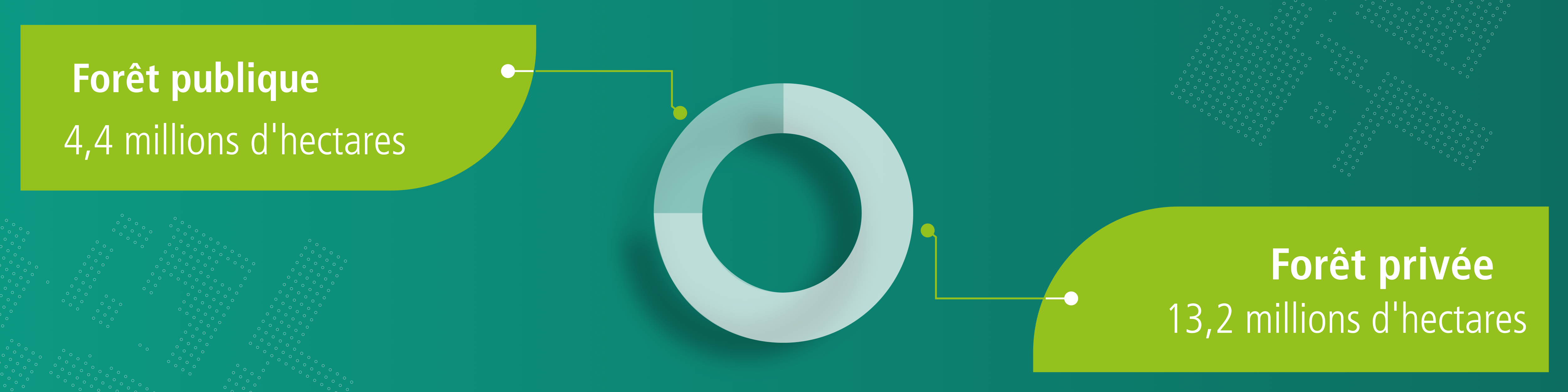 La forêt publique représente donc un quart des forêts de la France hexagonale et Corse. Elle se répartit entre les forêts domaniales (de l’État, 1,55 million d’hectares), et les autres forêts publiques (2,8 millions d’hectares), essentiellement des forêts communales.